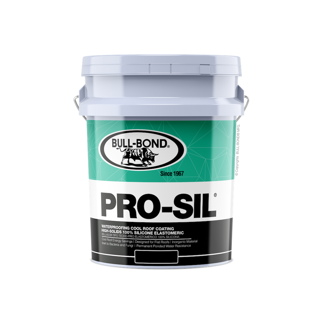 BULL-BOND® PRO-SIL™ es un sellador elastomérico tipo techo-frío, 100% silicona, alto en contenido de sólidos y con un acabado ultra blanco. Formulado para sellar y proteger techos contra el agua y los rayos UV en climas tropicales extremos. PRO-SIL ™ está elaborado a base de silicona pura, lo que lo hace un material inorgánico completamente inerte a las bacterias, hongos y el crecimiento de algas y resistente a las condiciones asociadas con agua estancada. La composición química de PRO-SIL ™ lo hace muy resistente al ambiente, 100% hidrofóbico y fácil de lavar.